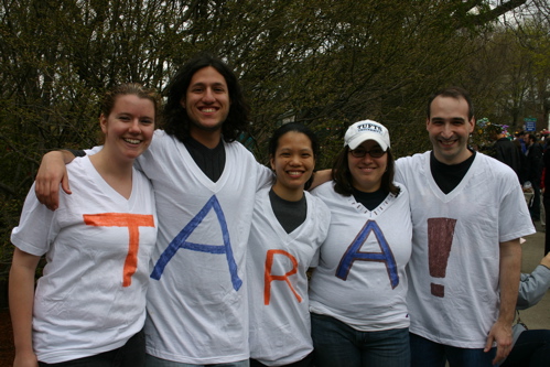 Monday, some friend from work and I went to see our friend Tara run in the Boston Marathon. We were the best cheering section ever. Here is a picture of all of us: