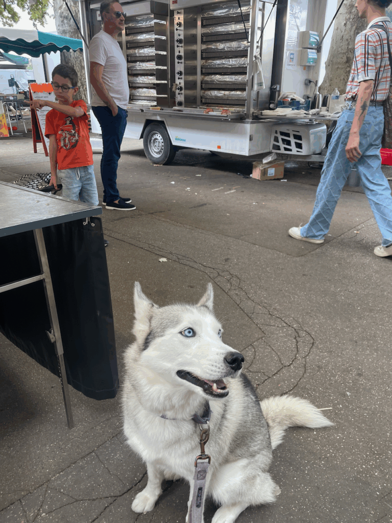 Lumi likes the marché as well. Probably because there are things like rotisserie chicken trucks.