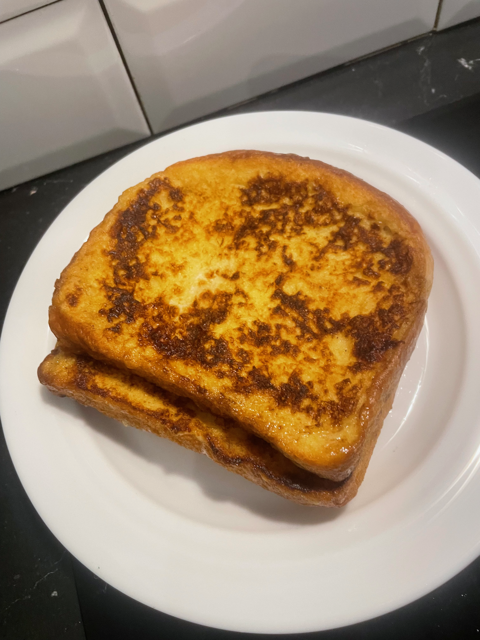 We forgot to buy syrup, so we garnished our toast with petite suisse, honey, and some fresh mango. No pictures of that, because it was super tasty but also super weird looking.