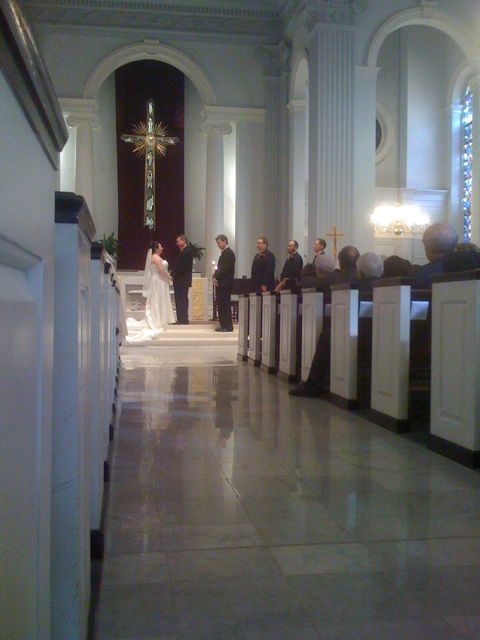 Kristian just pointed out that adult beverages + catholic mass = oh lordy lord please don’t let us fall asleep. My happiness and excitement for Jenn(ie) will keep me alert.